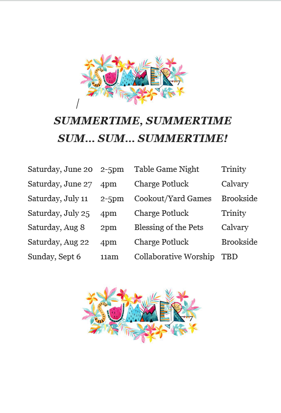 As I look at all that Brookside is facing, with folks being less physically able and with a dwindling pool of volunteers with specialized skills, I see hope. I see hope in the fact that the leadership is looking to the future of the church through improvements to the online worship experience, to security for the building and congregation, and in folks’ excitement and enthusiasm for volunteering and supporting the other congregations in our charge.
